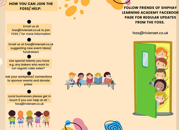 Without the FOSS team there would be no events and no “extras” for the children as a result of their fundraising. Even an hour at an event can make a big difference. Please contact FOSS today: foss@rivieraet.co.uk
