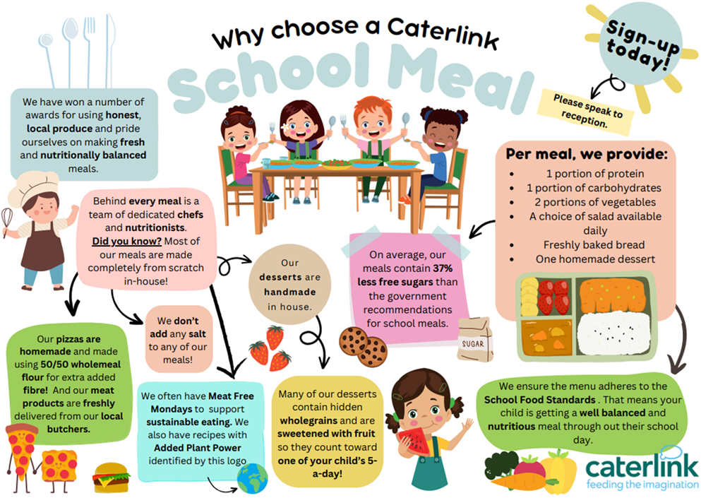 We're pleased to let you know that as of September 2025, we are working with Caterlink to provide freshly-made school meals on site.